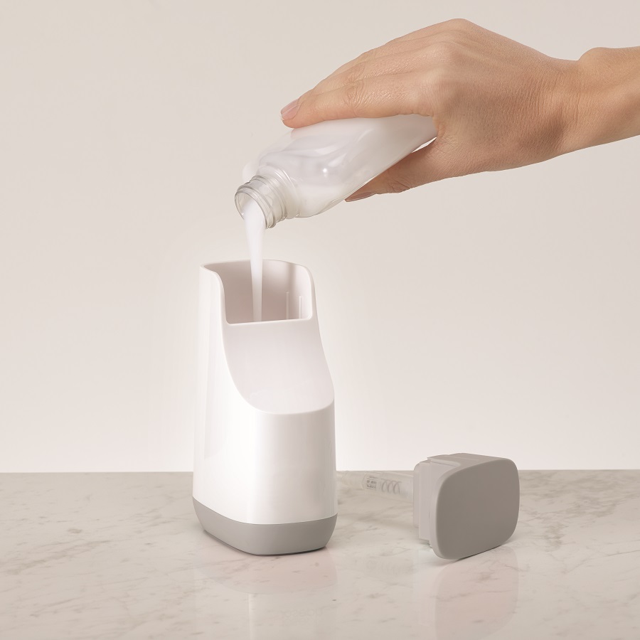 Диспенсер оснащен специальными силиконовыми ножками, которые придают ему дополнительную устойчивость на гладких поверхностях. Он легко разбирается и моется. Общий объём: 350 мл. Диспенсер отлично подойдет для ванной в современном стиле, его можно комбинировать с другими аксессуарами из коллекции Joseph Joseph.