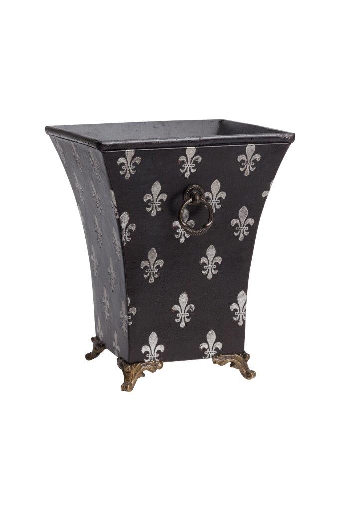 Корзина для белья выполнена из натурального дерева и коричневой экокожи, декорирована белыми геральдическими лилиями по всей поверхности, снабжена металлическими ручками в виде колец и фигурными ножками, которые придают ей дополнительную устойчивость. Подойдёт для любого стиля интерьера.