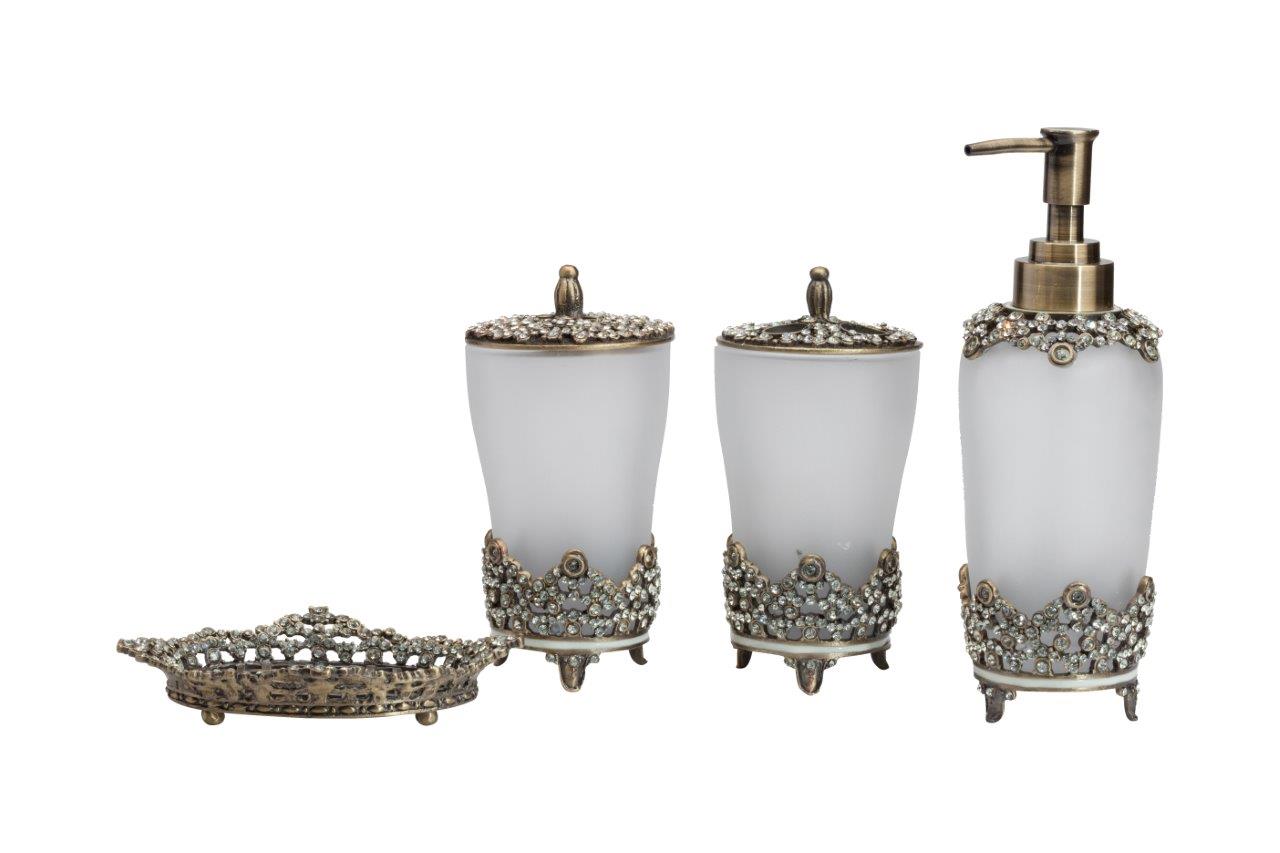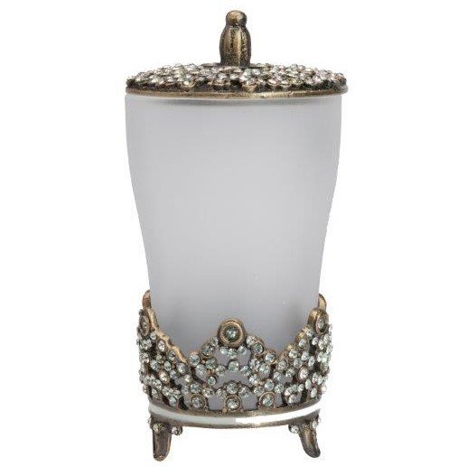 Ёмкость для хранения Aarushi — аксессуар в виде изящного матового стеклянного флакона, обрамленного металлической вязью, удобная ручка на металлической крышке, все это выгодно дополняет общий дизайн емкости. Благодаря неповторимому дизайну, удобству и легкости в использовании, является незаменимым аксессуаром и дополнит любой стиль интерьера. Непременно приобретите её вместе с другими предметами коллекции Aarushi для вашей ванной комнаты. Такой набор, несомненно, станет и шикарным подарком.