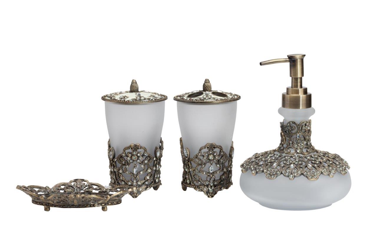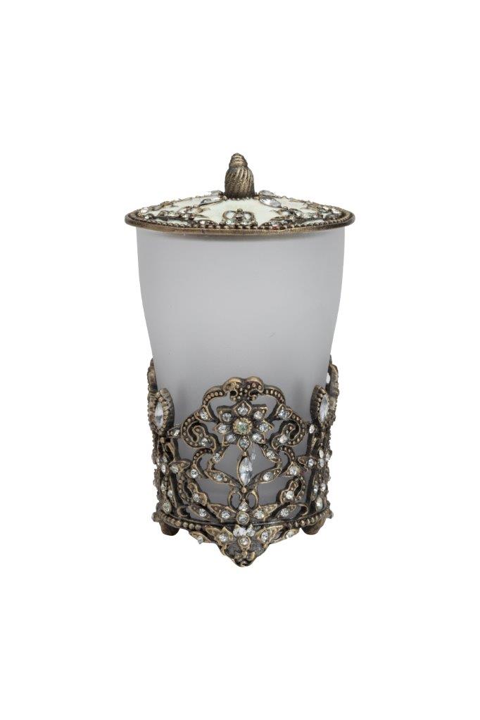 Ёмкость для хранения Isolde — аксессуар в виде изящного матового стеклянного флакона, обрамленного металлической вязью, удобная ручка на металлической крышке, все это выгодно дополняет общий дизайн емкости. Благодаря неповторимому дизайну, удобству и легкости в использовании, является незаменимым аксессуаром и дополнит любой стиль интерьера. Непременно приобретите её вместе с другими предметами коллекции Isolde для вашей ванной комнаты. Такой набор, несомненно, станет и шикарным подарком.