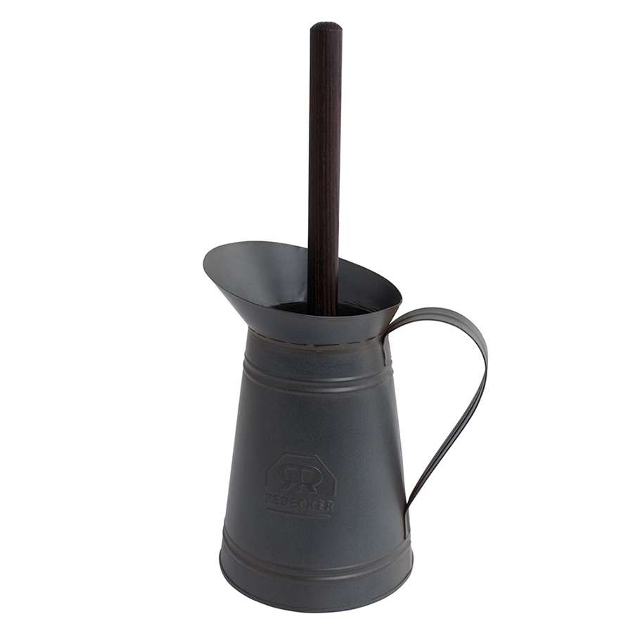 Набор из ёршика и металлической подставки, по форме напоминающей кувшин. Подставку легко и удобно мыть, она мало весит, оснащена широким носиком и большой ручкой. Ёршик сделан из термодревесины и высококачественного нейлона.