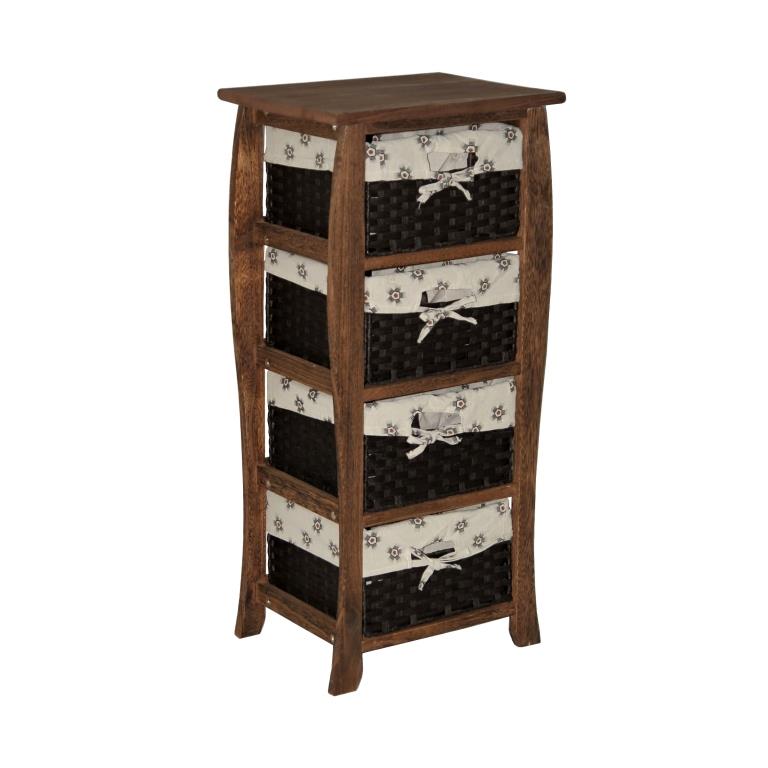 Комод из дерева с 4 плетеными ящиками из бумажного жгута. Каркас комода выполнен из экзотического дерева Павловния. Комод очень прочный и в то же время достаточно легкий. Чехлы на корзинах съемные. Немаловажным достоинством изделия является простота в уходе. Время от времени комод достаточно протирать влажной тряпочкой.