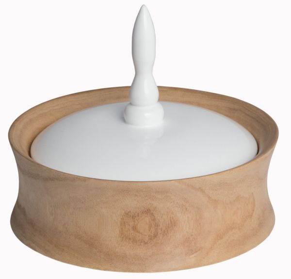 Чаша из натурального светлого дерева бережно прикрыта молочно-белой крышкой – прекрасное сочетание мягкого Эко-стиля и по-восточному изысканного силуэта. Эта шкатулка может стать элегантным подарком нежной барышне, знающей толк в аксессуарах, или скромно украсить Ваш интерьер, поместив в себя мелкие и всегда нужные под рукой вещицы.