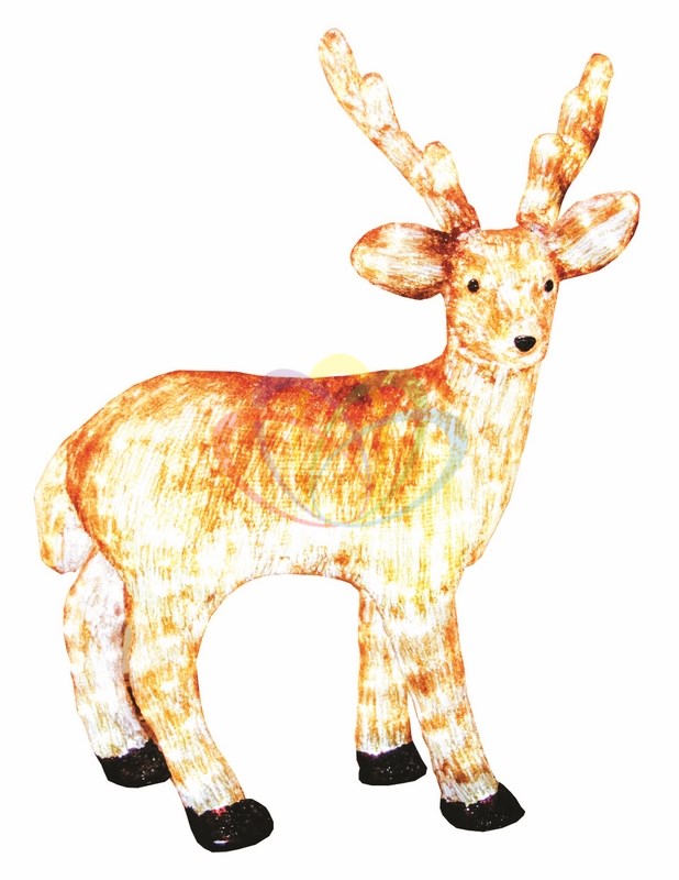 Акриловые фигуры за несколько лет вызвали большой интерес у дизайнеров и частных клиентов. С каждым годом расширяется не только ассортимент акриловых фигур, но и появляются новые технологии нанесения акрила. Эти яркие, светящиеся объемные фигуры, состоящие из металлического каркаса, акрила и светодиодов, применяются для оформления и создания новогодней атмосферы в кафе, ресторанах, торговых центрах, магазинах, на площадях и перед входом, а также просто в частных домах и квартирах. Все фигуры укомплектованы понижающим трансформатором , что обеспечивает безопасность при контактировании, а так же имеют степень защиты IP 44, что позволяет использовать их как в помещении, так и на улице. Акриловая светодиодная фигура Бурый олень высотой 100 см, светящаяся более чем 380 ярких диодов, выполнена по специальной технологии нанесения акрила имитируя шерстяной покров реального животного. Новинка этого сезона позволит Вам создать ту самую, настояющую новогоднюю атмосферу и принести сотни радостных улыбок. Можно создать более интересную композицию и сделать праздник еще ярче, если составить несколько бурых оленей вместе Бурый олень артикул 513-306