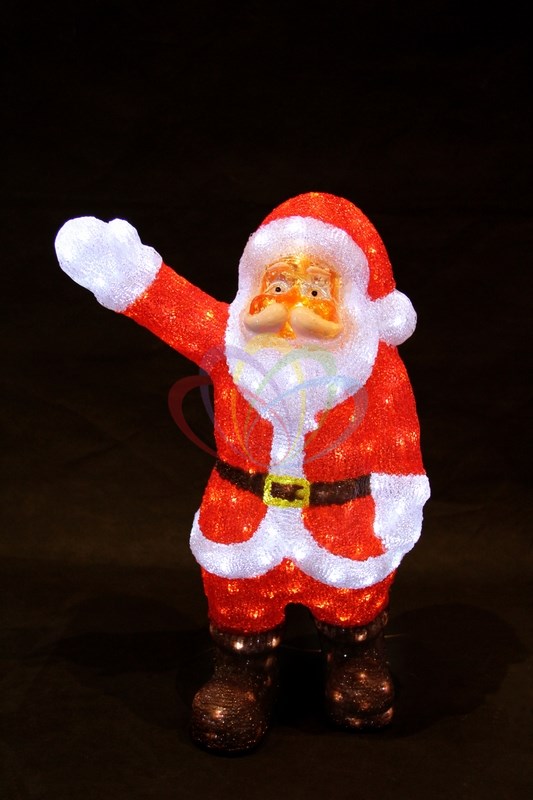 Акриловые фигуры за несколько лет вызвали большой интерес у дизайнеров и частных клиентов. С каждым годом расширяется не только ассортимент акриловых фигур, но и появляются новые технологии нанесения акрила. Эти яркие, светящиеся объемные фигуры, состоящие из металлического каркаса, акрила и светодиодов, применяются для оформления и создания новогодней атмосферы в кафе, ресторанах, торговых центрах, магазинах, на площадях и перед входом, а также просто в частных домах и квартирах. Все фигуры укомплектованы понижающим трансформатором , что обеспечивает безопасность при контактировании, а так же имеют степень защиты IP 44, что позволяет использовать их как в помещении, так и на улице. Акриловая светодиодная фигура Санта Клаус приветствует высотой 60 см, светящаяся более чем 200 ярких диодов, выполнена по специальной технологии нанесения акрила имитируя шерстяной покров реального животного. Она позволит Вам создать ту самую, настояющую новогоднюю атмосферу и принести сотни радостных улыбок.