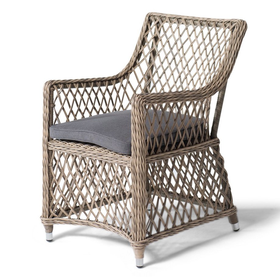 Латте, плетеный кресло в комплекте с подушкой, алюминиевый каркас, искусственный ротанг, ручное круглое плетение, размер 68х55х84 мм, цвет соломенный