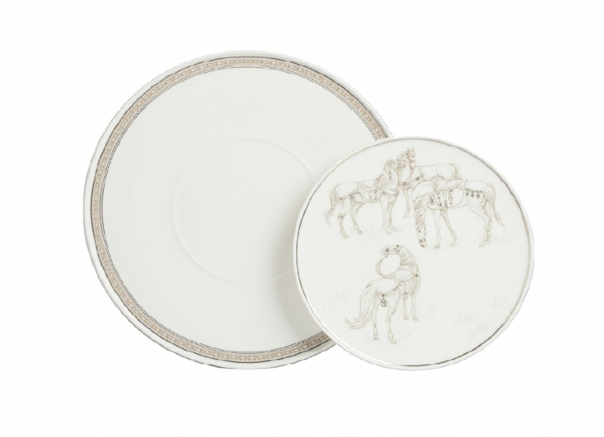Комплект тарелок Flambee I выполнен из костяного фарфора в белом цвете. Тарелки расписаны в приглушённом серебристом тоне с изображением пасущихся лошадей. Такая элегантная роспись подойдет к любому стилю сервировки. В комплект входят две тарелки диаметром 28 и 20 см.