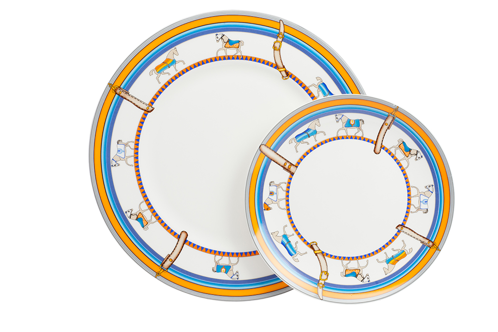 Комплект тарелок Saltos выполнен из костяного фарфора. Декорирован комплект яркой трёхцветной окантовкой и изображением детских игрушек в виде лошадок. Дно тарелки оставлено чисто белым, забавный и эстетичный декор побуждает приобрести комплект как для дома, таки и для престижного детского кафе. В комплект входят две тарелки диаметром 25,5 и 20 см.