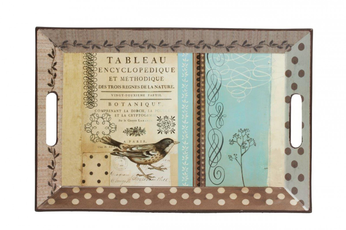 Декоративный поднос Sentimo — это изысканный элемент декора кухни, оформленной в стиле Прованс. Он изготовлен из пластика — легкого, прочного, удобного в использовании и уходе материала. Растительные орнаменты, надписи и симпатичная птичка придают аксессуару оригинальный и неповторимый вид. На подносе можно подавать закуски, салаты или быстро сервировать стол к чаепитию.