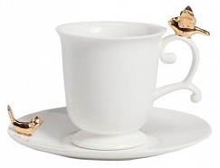 Чайная пара Bejaflor — это белоснежная керамика, лучшее качество от производителя, элегантность формы. Золотые бабочки, присевшие на изящную ручку чашки и край блюдца, заставляют влюбиться в эту пару с первого взгляда.