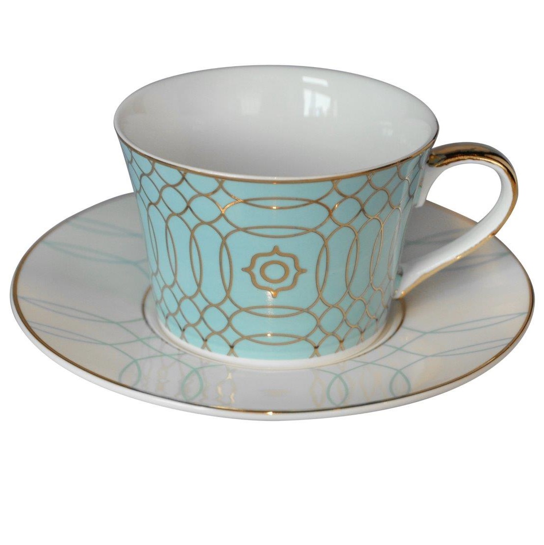 Великолепная чайная пара Turquoise Veil из костяного фарфора сделает праздничным даже самое обыкновенное чаепитие. Изделия из тончайшего костяного фарфора отличаются особой изысканностью и прозрачностью на свет. Изящная бирюзовая чашка украшена нежным, воздушным рисунком, подчеркивающим невесомость материала. Безупречный стиль и качество исполнения придутся по вкусу ценителям дорогих эксклюзивных вещей. Вы можете приобрести чайную пару отдельно, а также вместе с другими предметами коллекции Turquoise Veil «Бирюзовая вуаль».