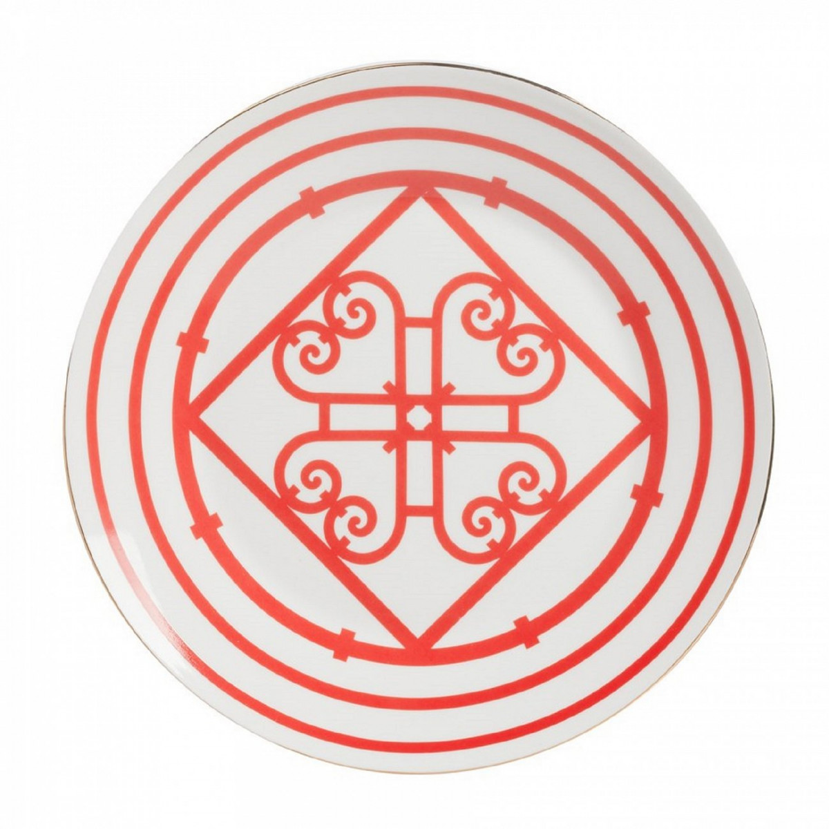 Выполненная из грубой керамики тарелка Skarletti диаметром 24 см расписана оригинальным красным орнаментом в сочетании геометрического рисунка и завитка на белом фоне, благодаря чему изделие будет гармонично смотреться на праздничном столе. Тарелку можно приобрести отдельно или в дополнение к другим предметам коллекции.