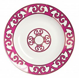Яркая и нарядная тарелка для супа коллекции «Sienna» украсит собой обеденный стол и подчеркнет изысканный вкус хозяев. Выполненная из полупрозрачного костяного фарфора, тарелка украшена насыщенным лиловым орнаментом в стиле модерн moderne. Изысканная окантовка дополнена солярным символом в центре изделия. Вы можете приобрести тарелку отдельно или в комплекте с другими предметами серии «Sienna».