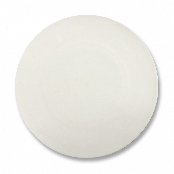 Стильная плоская столовая тарелка без борта из тончайшего костяного фарфора