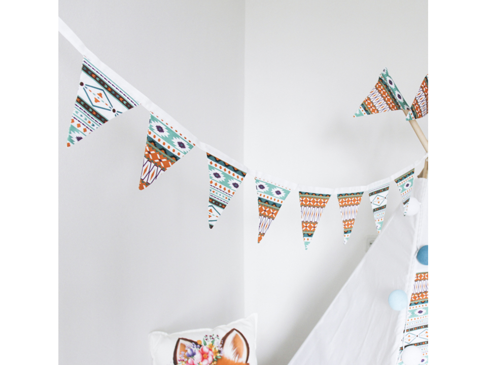 Гирлянда из 8 тканевых флажков. Еще один декоративный элемент вигвама для детей.