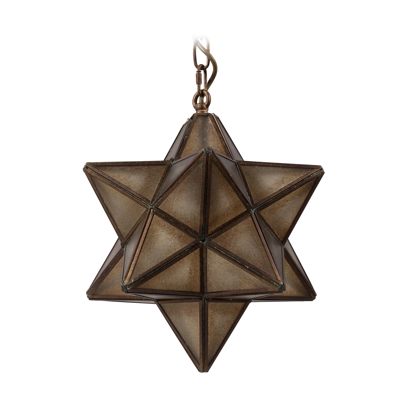 Эффектный подвесной светильник Rossa сразу запоминается благодаря необычному металлическому абажуру, выполненному в виде многогранной звезды с тёмно-коричневыми вставками из стекла, подвешенному на элегантной металлической цепи. Светильник будет заметным декоративным акцентом в любом интерьере.