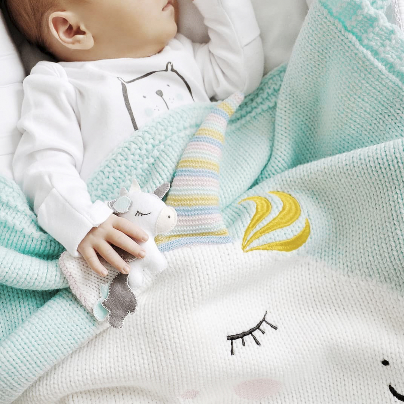 Интерактивный плед с единорогом станет не только практичной деталью интерьера, но и верным компаньоном в прогулках с коляской и хранителем самых сладких снов вашего малыша!