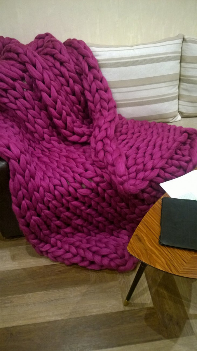 Плед крупной вязки изготовлен вручную из толстой пряжи, что делает изделие уникальным с эстетической точки зрения. Такой декор впишется в любой стиль интерьера.