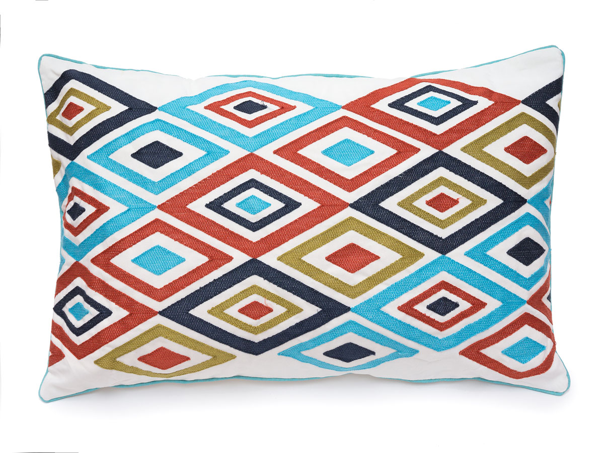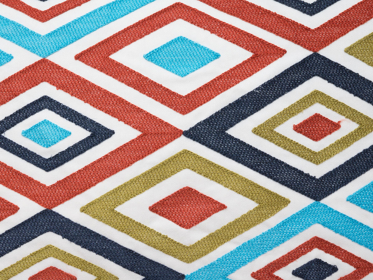 Насыщенная цветовая гамма и геометрический узор подушки идеальны, если хочется добавить этнические нотки в интерьер. Использованная при вышивке шерстяная нить также играет в пользу создания атмосферы эклектики. Окантовка по краю. Скрытая молния. Внутренняя подушка из холлофайбера. В производстве использовано высококачественное первичное сырье из Южной Кореи и не использованы волокна вторичной переработки.